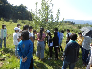 りんご農家さんの園地でりんご狩りと芋煮会で交流(2021年)